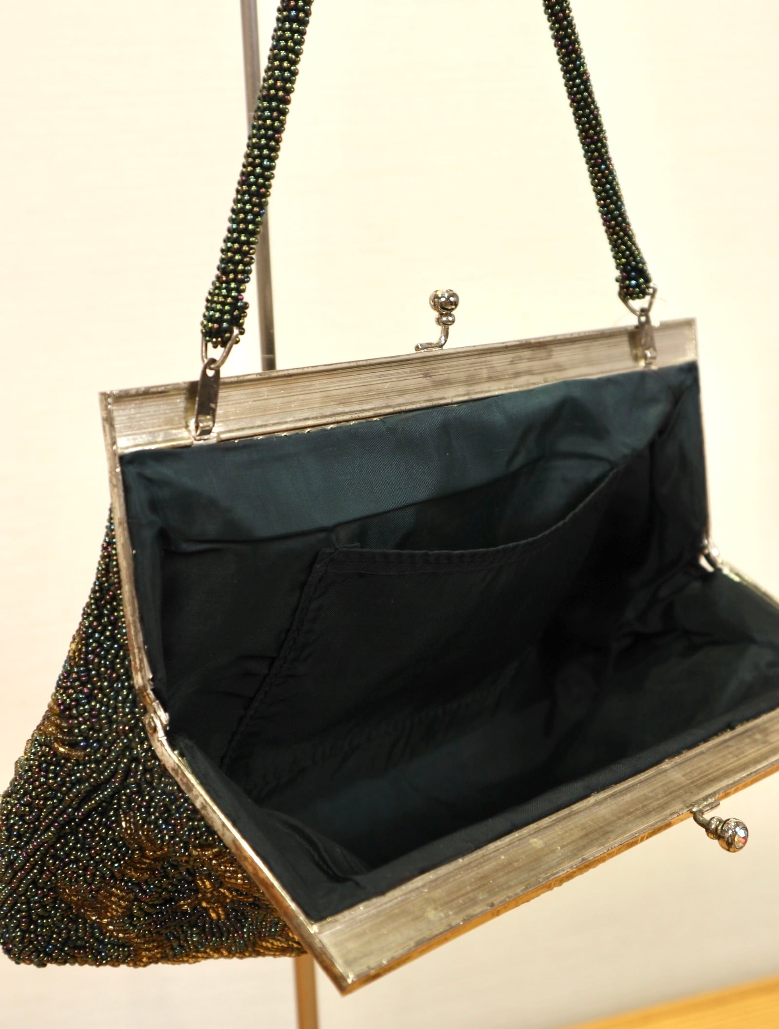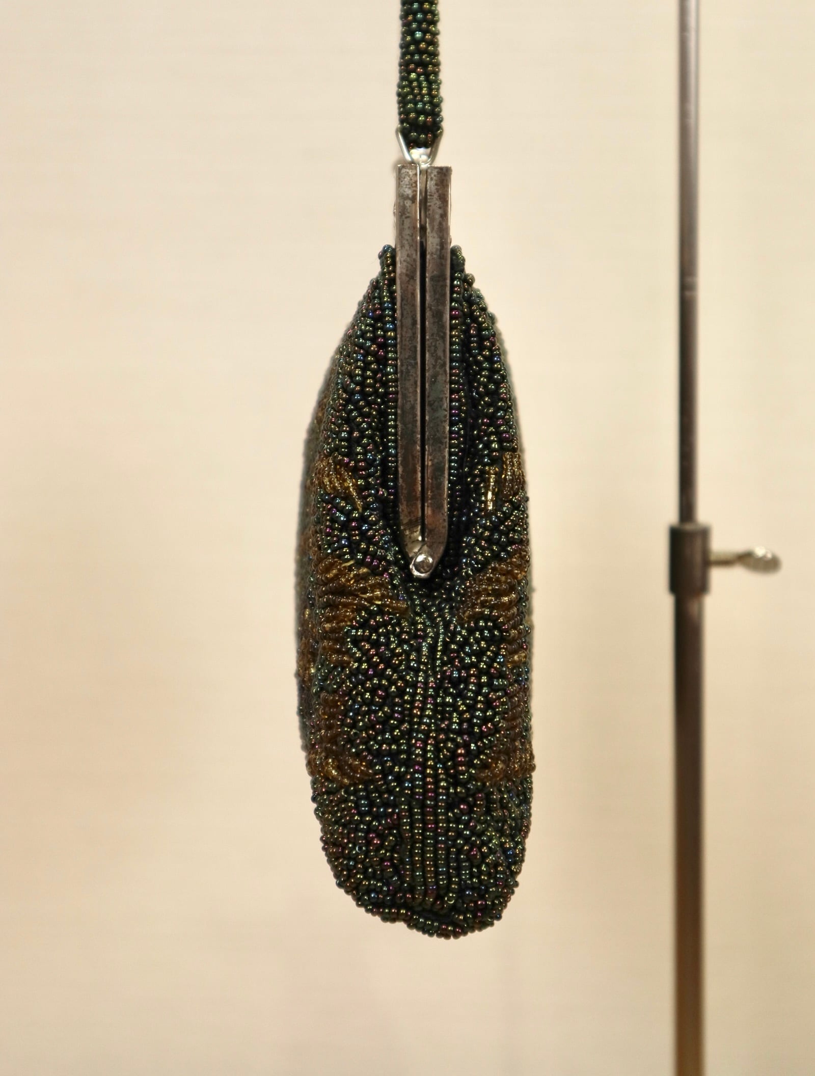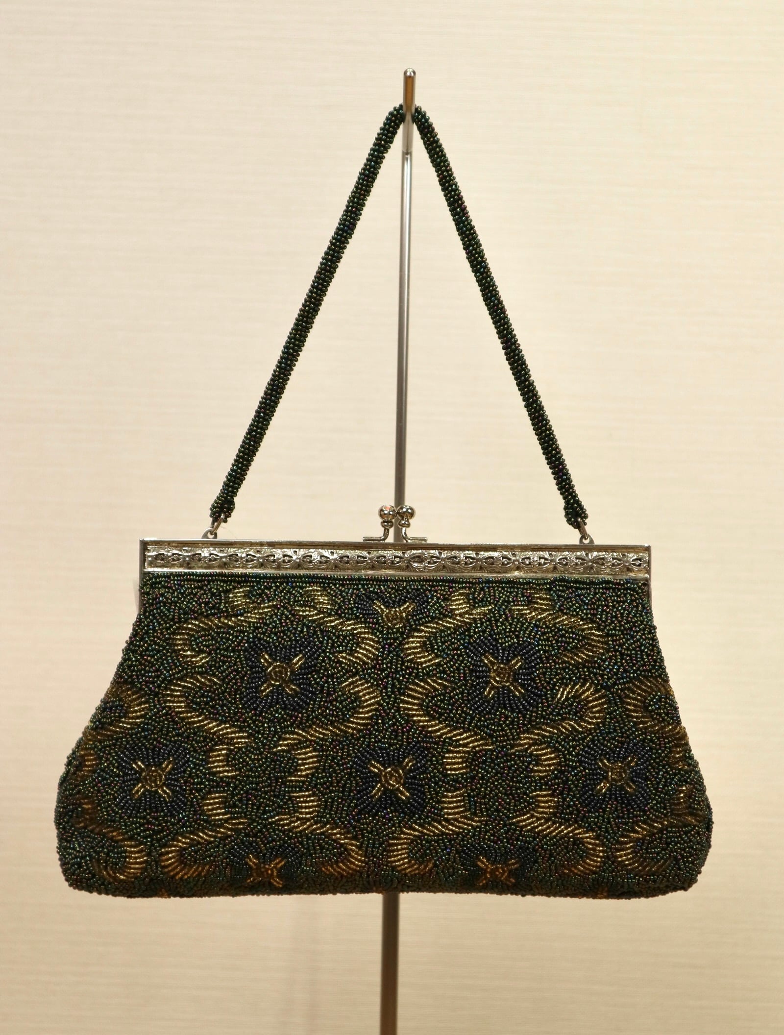 当店がコレクションしているアンティークのビーズバックを合わせてみました。持ち手のビーズはバックの中にしまうことが出来る構造でクラッチバックにもなります。
