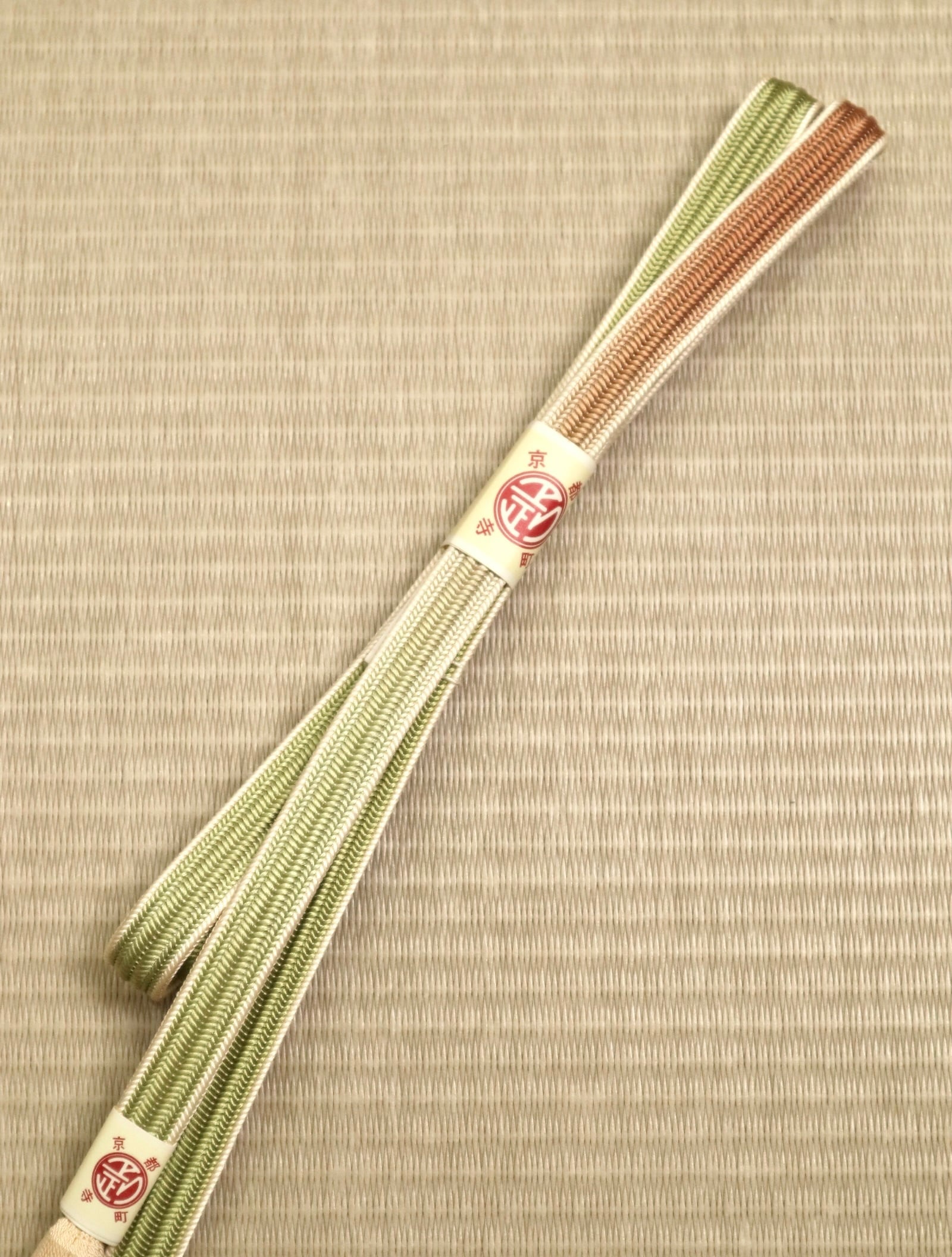 帯締めは京都のゑり正さんの帯締めでグラーデーションしたデザインのしっかっりとした組の帯締めです。