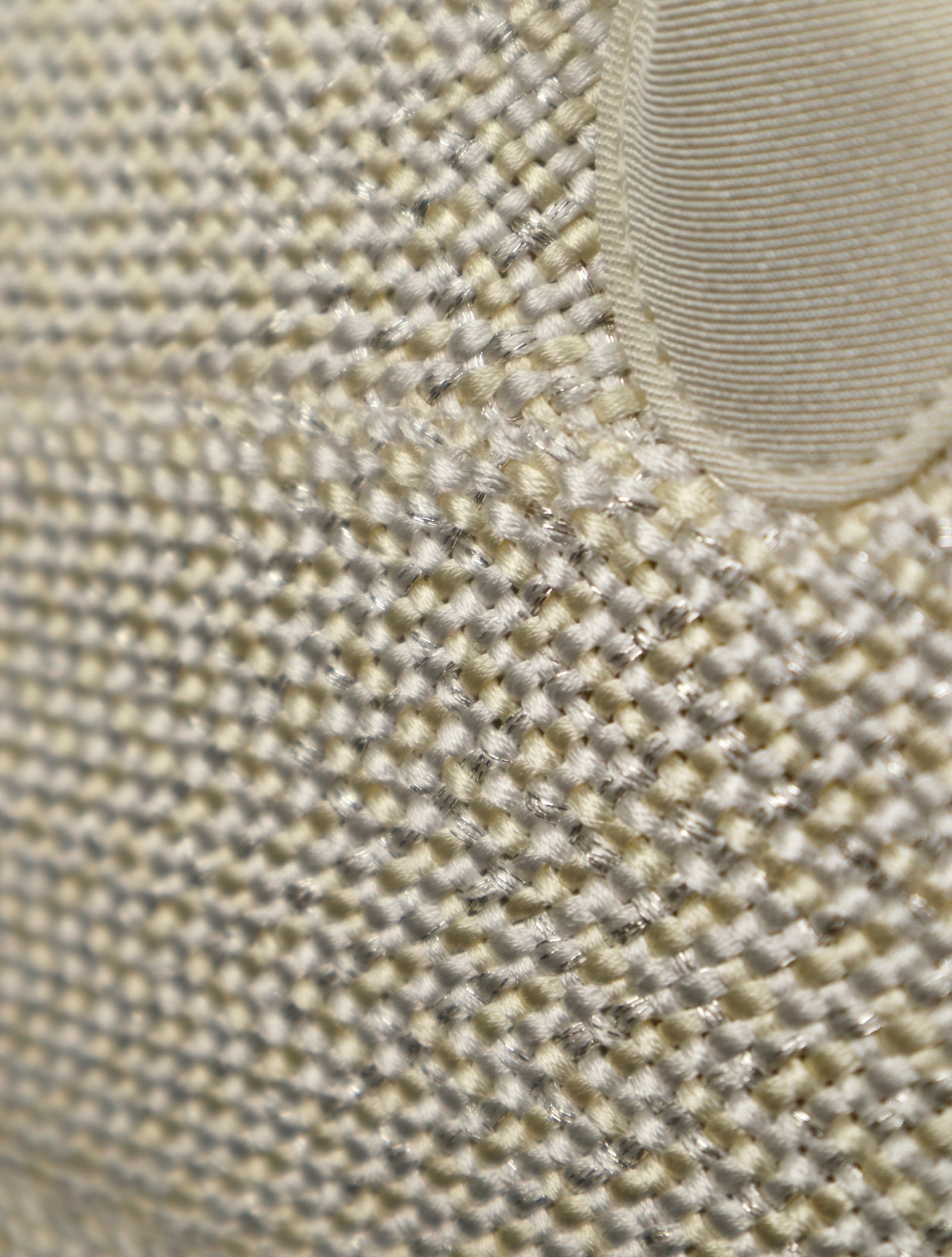 白、薄い生成色、銀色の糸を使っています。