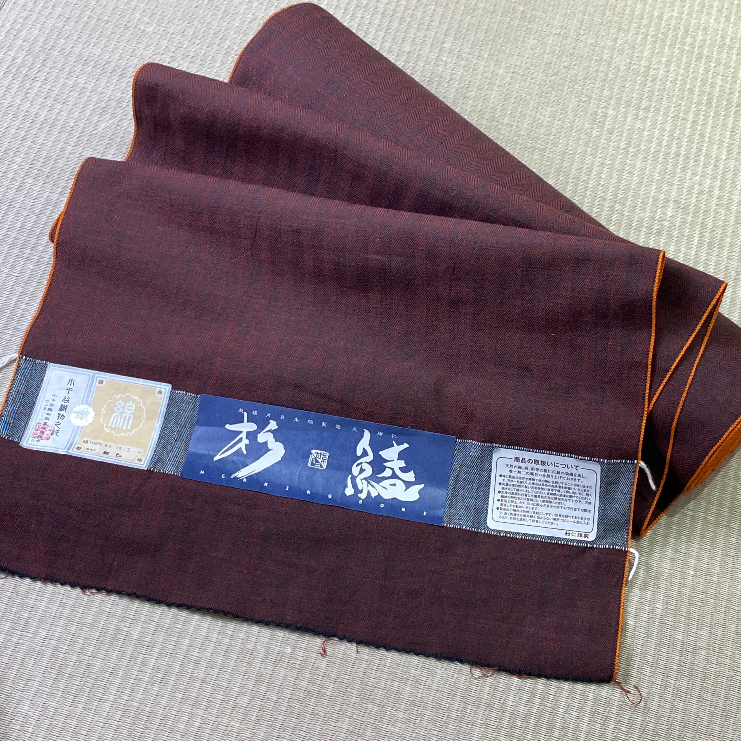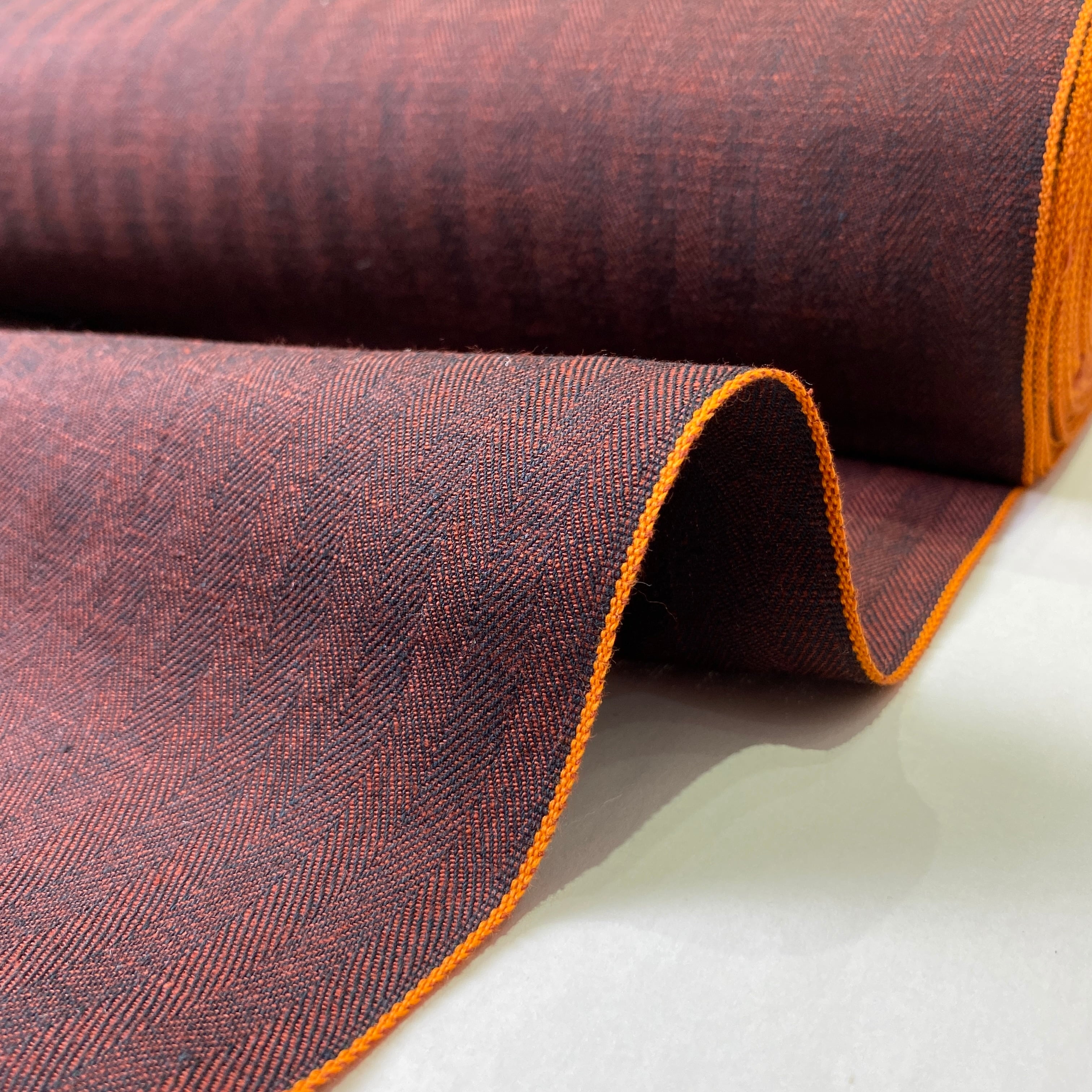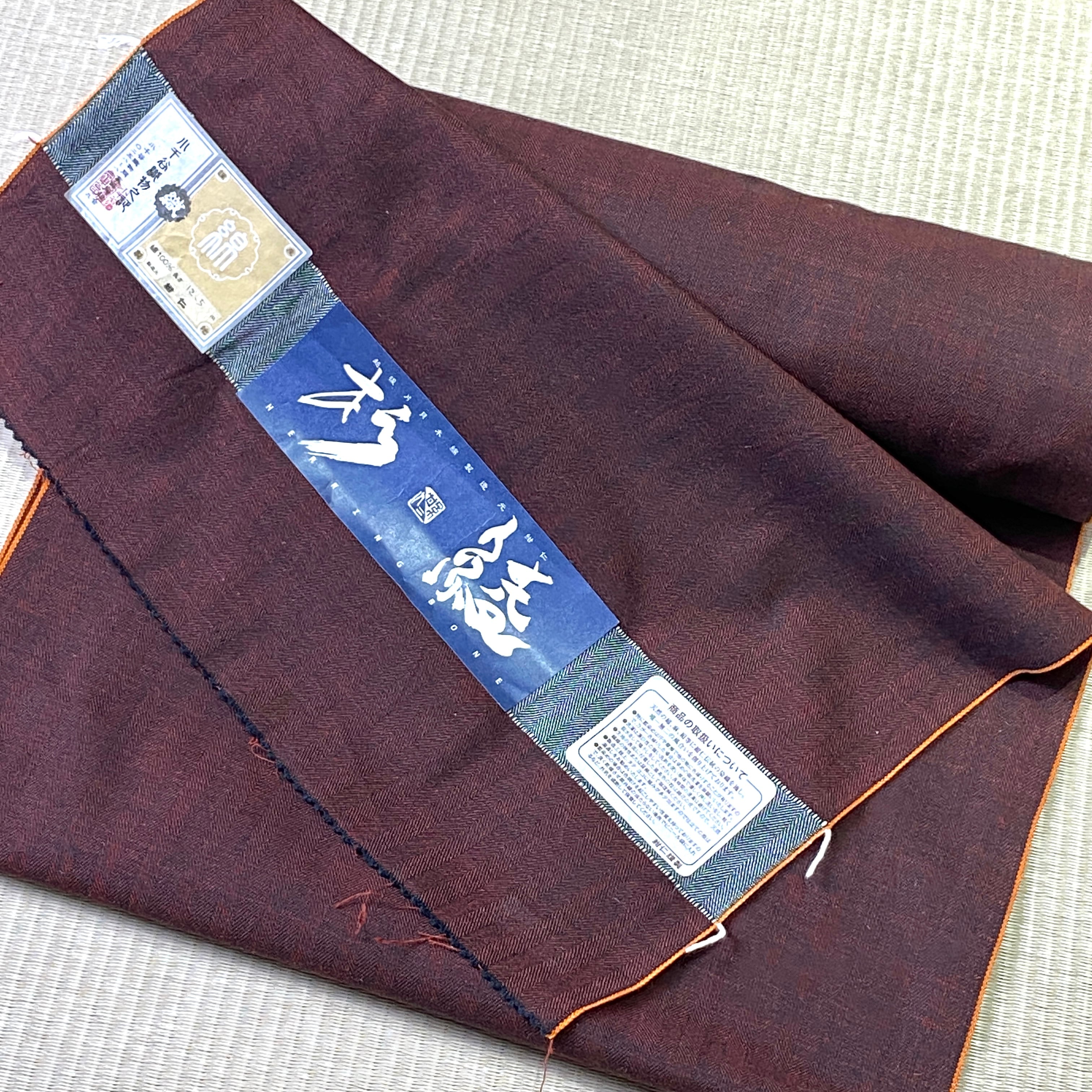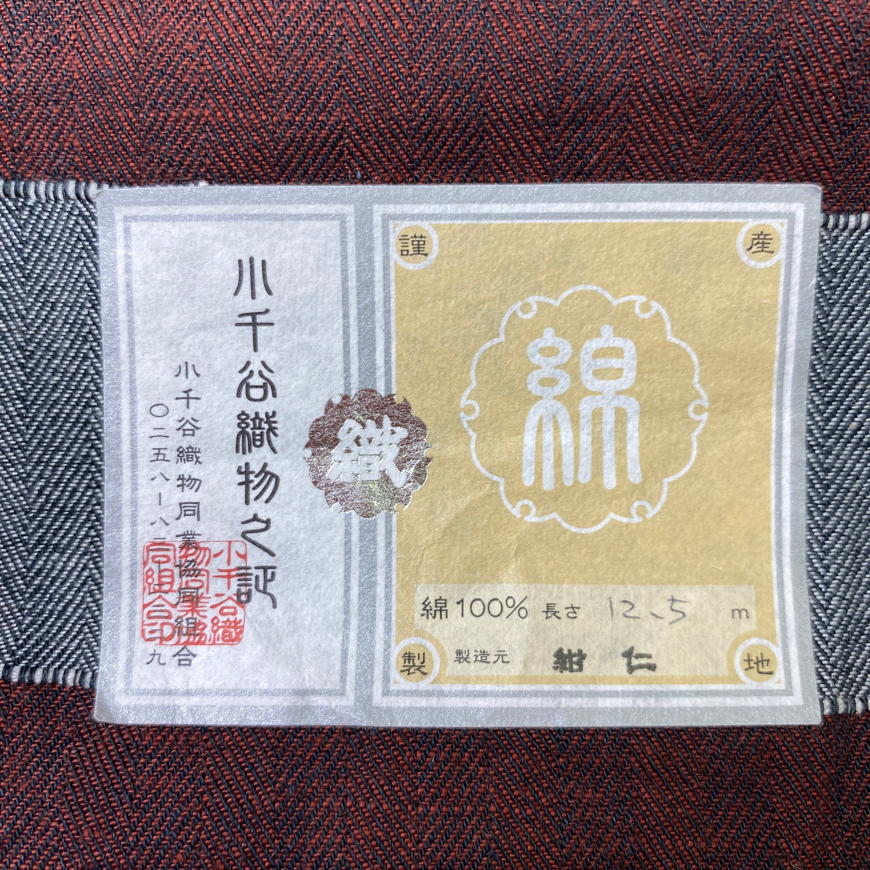 両端の赤耳は仕立て上ったときには隠れてしまう部分ですが、反物として確固たる存在を主張する、作り手のこだわりを感じさせる部分でもあります。